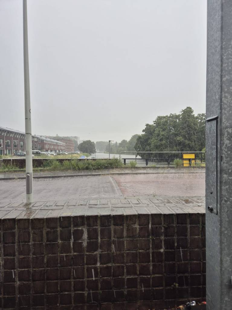 Ik kijk snel even of alles rondom de sluis “onweerveilig” is. Gelukkig is alles in orde. Precies op het moment dat ik mijn huisje in stap, barst de regen los. Echt zo’n bui waarbij je binnen vijf seconden doorweekt bent.