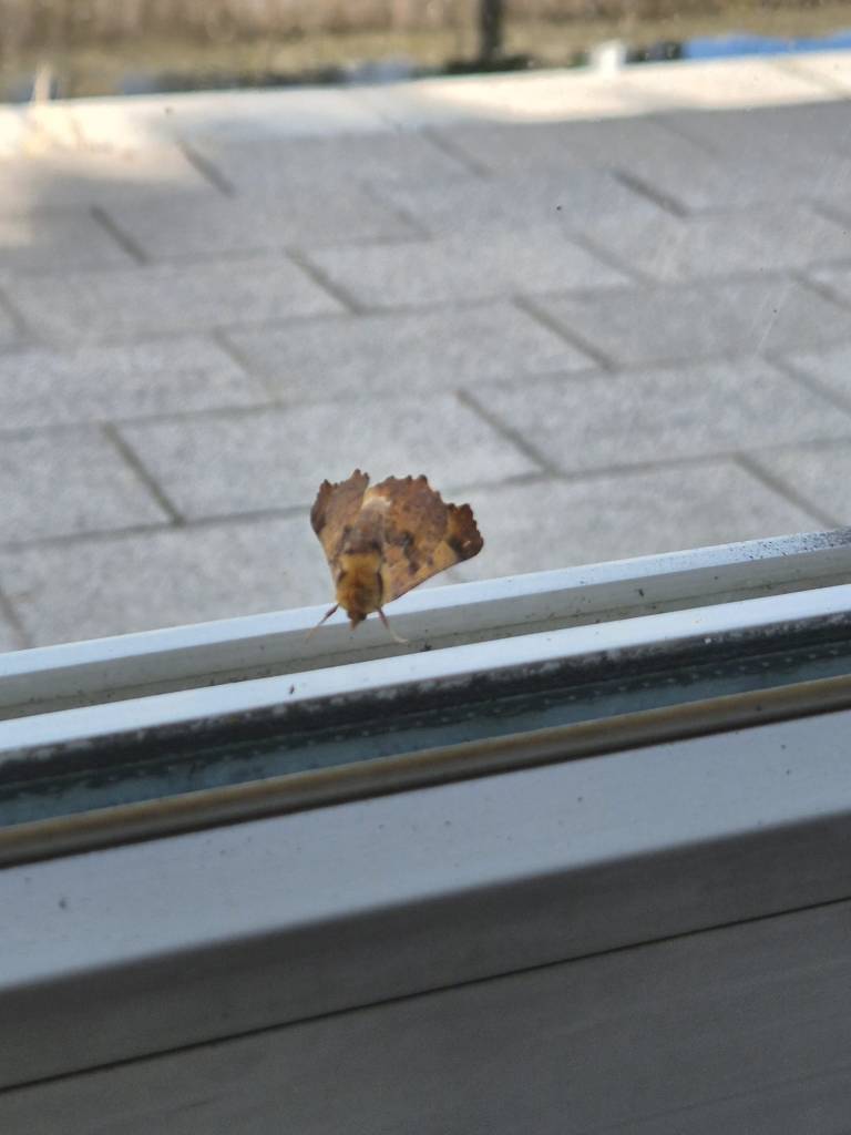 Ik dwaal een beetje door de apps en websites die ik volg. Altijd wel wat nieuws te ontdekken. Dan valt mijn oog op het raam: een vlinder zit daar stil te schuilen. Een klein momentje van natuurpracht — zomaar midden in een grijs/blauwe, wisselvallige dag.