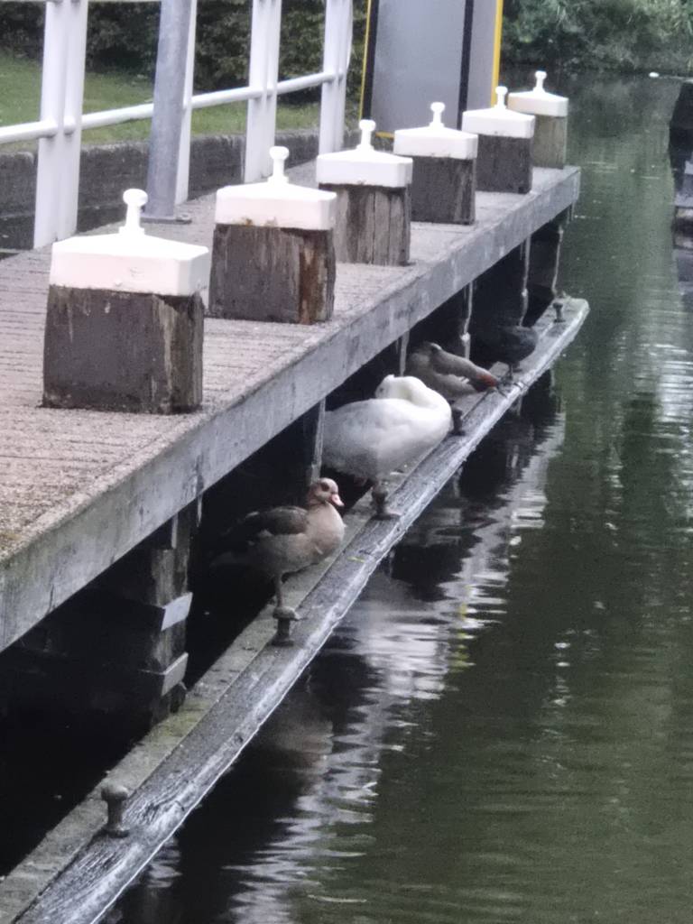 Als de deur open kan, blijkt de motor het nog steeds niet te doen. Het bootje wordt inderdaad langzaam naar binnen gesleept. Ze willen na het schutten aan de steiger aanleggen om te kijken of ze het kunnen oplossen. Prima plan. Terwijl het water stijgt, bedenk ik me ineens: hoe denkt die dame aan de overkant eigenlijk weer bij haar boot te komen? Lachend zeg ik: “Misschien handig als je eerst even oversteekt, vóór ik de deur open doe?” Ze schiet in de lach en stapt snel over de deur heen. Het bootje wordt er voorzichtig uit gesleept en aangemeerd.