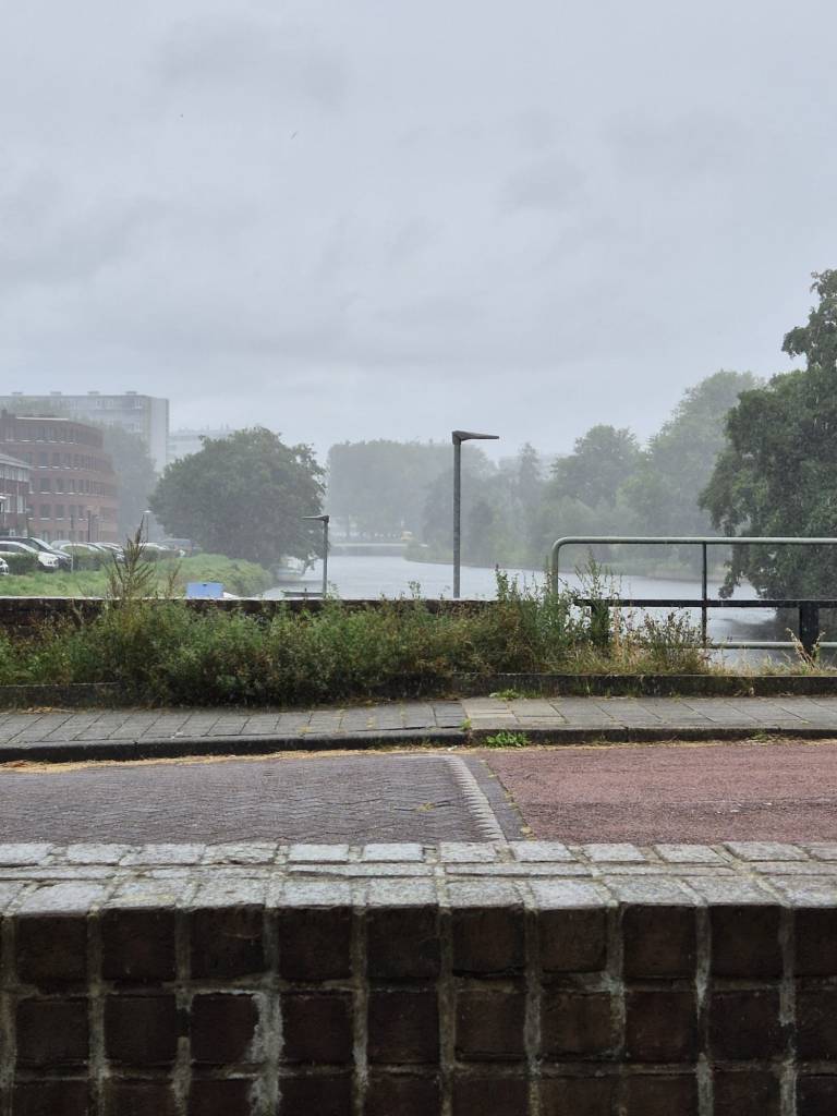 Dan komen de visvriendjes weer langs – eigenlijk twee neefjes – die regelmatig hun hengel uitgooien bij de sluis. Vandaag heb ik echt respect voor ze. Terwijl er een flinke bui overtrekt, blijven ze stug doorslaan met hun hengel. Alles om toch maar dat ene visje te vangen. Helaas lukt het ze niet en zie ik ze al snel weer wegfietsen.
