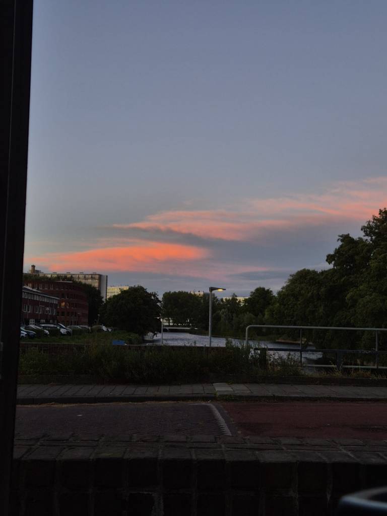Het weer blijft de hele dag grillig. Het ene moment droog, het volgende moment heel erg nat. Gelukkig eindigt de dag mooi: met een schitterende lucht boven de sluis.